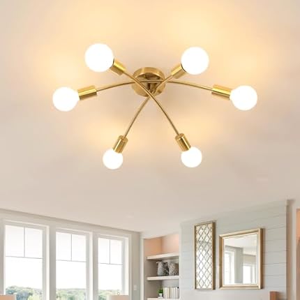Tealight Gold Sputnik Ceiling Light Fixture, Modern 6-Light Sputnik Chandelier with 350° Rotatable Arms, E26 Bulb Compatible for Living Room, Bedroom, Dining Room – Stylish Home Decor Lighting