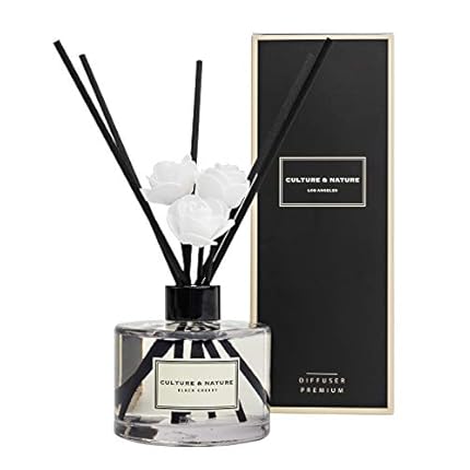 CULTURE & NATURE Reed Diffuser Set 6.7oz (200ml) Black Cherry Scented Diffuser with Sticks Home Fragrance Reed Diffuser for Bathroom Shelf Decor