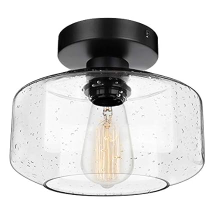 SunRider Industrial Semi-Flush Mount Ceiling Light Fixture, Modern Seeded Glass Pendant Lamp, Black Farmhouse Hanging Lighting for Bedroom Hallway