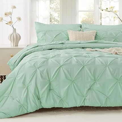 Sasttie Full Size Comforter Set, 7-Piece Bed in a Bag, Pintuck Bedding Sets for All Season, Includes Comforter, Flat Sheet, Fitted Sheet, Pillowcases and Pillowshams, Sage