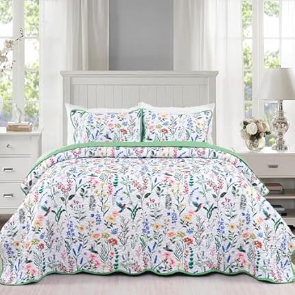 Invoibler Floral Quilt Queen Size Lightweight Reversible Bedspread Coverlet Set 3 Piece Microfiber Bedding Quilts Set for All Season (1 Quilt, 2 Pillow Shams)