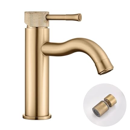 TRYSEA Brushed Gold Bathroom Faucet,with Splash Sprayer Extender Aerator,Single Handle Vanity Sink,for Vanity Farmhouse and RV