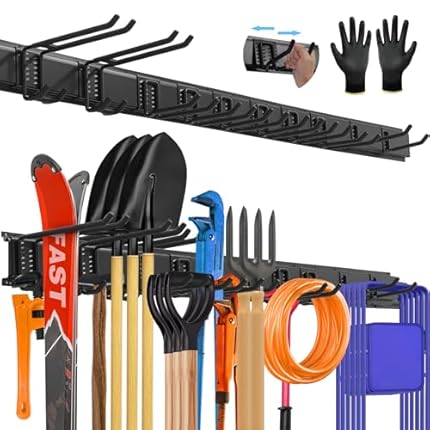 SUKIZZ 64” All-Metal Garage Tool Organizer Wall Mount â Heavy-Duty Tool Rack Holds 680 lbs, Adjustable Hooks for Garage, Yard, and Garden Equipment