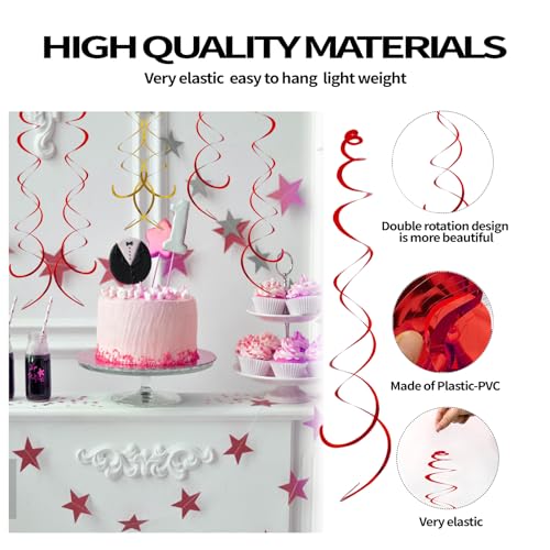 【Package includes】You will receive 30pcs red party swirls decorations,Foil swirl decorations have a double-swirl design.Each circle length 5.7in and each unfolded length 27.5in