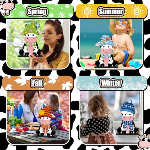 Widely Applicable: our wooden interchangeable seasonal cow desk decor is easy to use and decorate, which integrates a rustic and farmhouse style, adding a charming touch to your home and office decor, you can place it on the shelf, countertop, desk, mantel or many other places