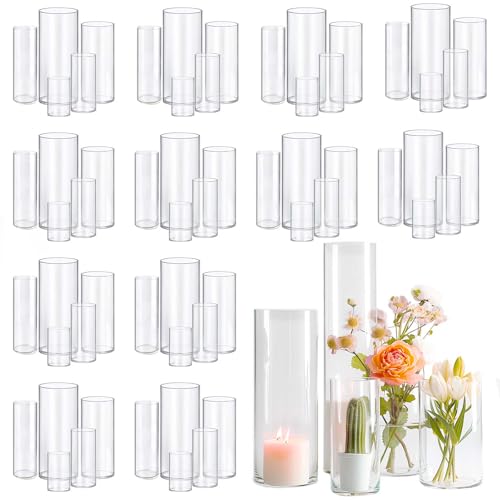60pcs Glass Vase Cylinder Vases for Centerpieces Small Flower Glass Clear Vases Home Decor Centerpiece Table Flower Vase Decorations for Wedding Decorationï¼Holiday Mixed Sizes Tall