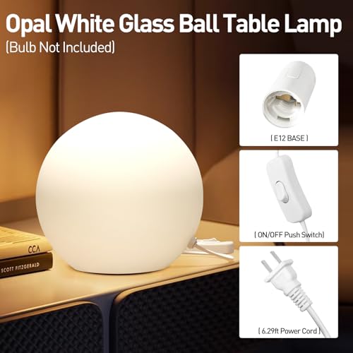 NewBiz Bri 7.8 Inch Ball Table Lamp with Glass Shade Stylish Ball Light Lamp for Bedroom Living Room and Bookshelf Modern Design Perfect for Home Decor, Without Bulb