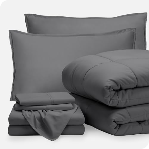 Bare Home Bed-in-A-Bag 7 Piece Comforter & Sheet Set – Full – Goose Down Alternative – Ultra-Soft 1800 Premium – Bedding Set (Full, Grey/Grey)