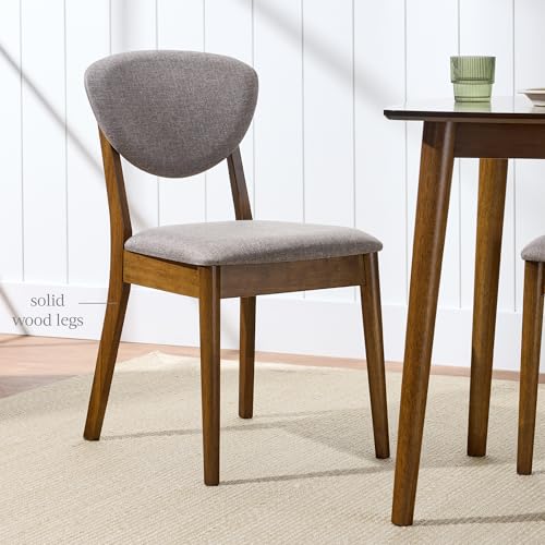 Best Choice Products Dining Chairs Set of 2, Mid-Century Modern Upholstered Wood, Armless w/Seat Cushion, Padded Backrest – Walnut/Medium Gray