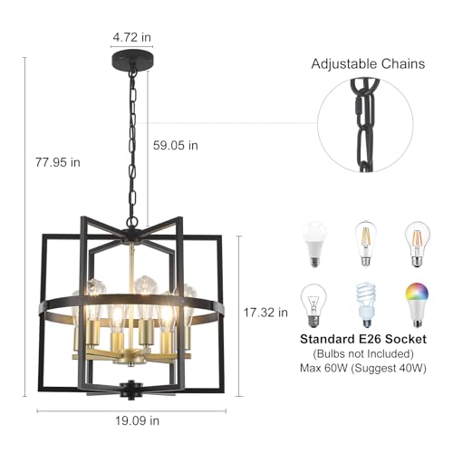 【E26 Bulbs & Dimmable】The metal chandelier requires 6 x E26 bulbs (Max 60W per bulb but suggest 40W). Compatible with LED, Edison, incandescent, halogen bulb(Bulb not included). When the farmhouse chandeliers are used with a dimmable switch or dimmable bulbs(Bulbs and Switch are Not Included) can change the lighting color and brightness to meet your atmosphere needs