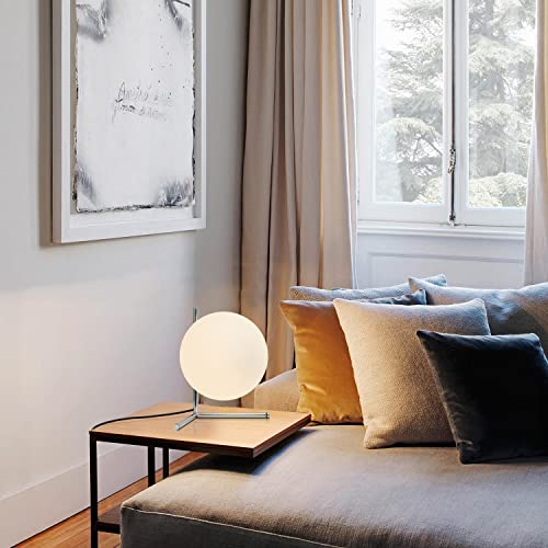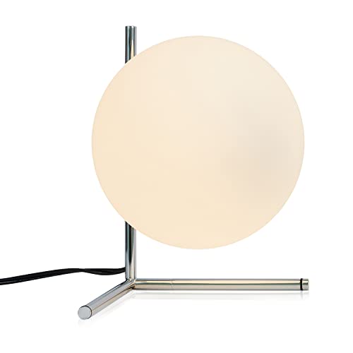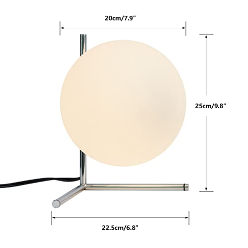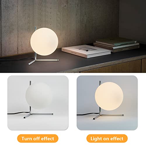 BOKT Modern Globe Table Lamp Chrome Simple Desk Lamp Bedside Nightstand Small Lamp Nordic Creative Design White Glass Ball Reading Lights for Study Living Room Bedroom Children Room Cabinet Farmhouse