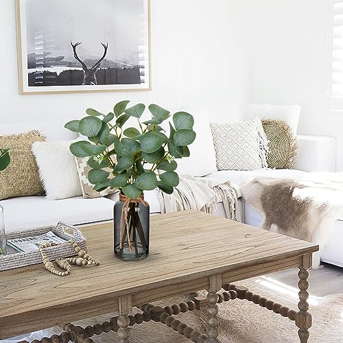 GREEN ARTIFICIAL EUCALYPTUS: Add some life to your decor with these artificial eucalyptus leaves stems in vase! The leaves are made from premium-quality silk with plastic wired stems, and they boast realistic-looking, intricate vein detailing. These fake leaves mimic the look, feel, and texture of real eucalyptus leaves, and the frosted green color is perfect for adding a touch of nature to any space.