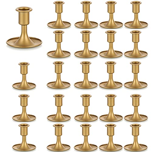 Candlestick Holders Taper Candle Holders, Romadedi Gold Candle Stick Candle Holder for Table Centerpiece, Wedding Reception, Festive Christmas Mantel Decoration or Home Decor, Set of 24