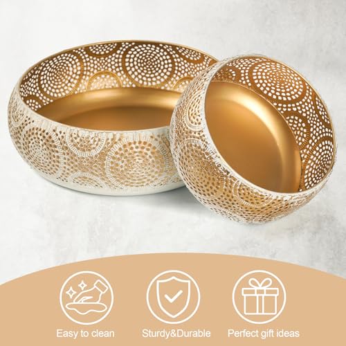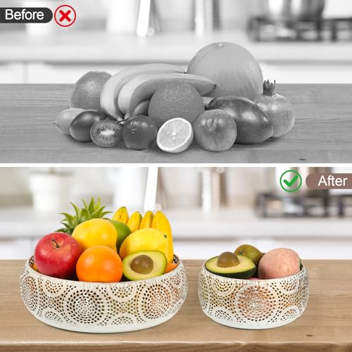Save Space:Modern 2-Piece Gold Metal Fruit Bowl Set-Elegant Countertop Decor with Vintage Inspired Design for Kitchen, Dining Table, Living Room & Office