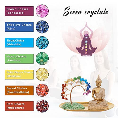 INNOLITES 7 Chakra Crystal Tree and Buddha Statue Set, Yoga Meditation Decor, Money Tree and Buda Statues for Home Living Room Office Shelf Decoration Wealth and Luck