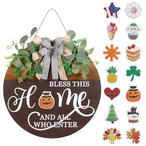 ALL SEASONS: Our “BLESS THIS HOME AND ALL WHO ENTER” front door welcome sign comes with a range of Interchangeable sign, such as spring, summer, autumn, winter, Valentine’s Day, St. Patrick’s Day, Easter, Memorial Day, 4th of july, Independence Day, Halloween, Thanksgiving, Christmas and New Year party, making them suitable for year-round decoration.