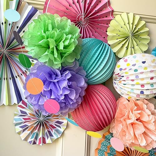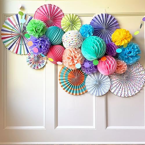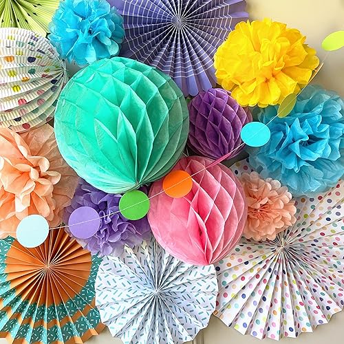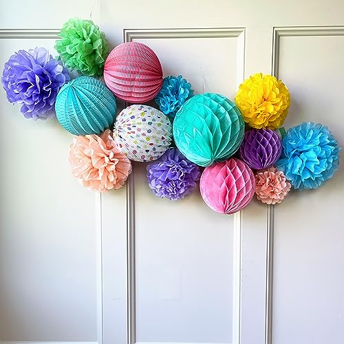 PapaKit Premium Paper Decoration Set – Pom Pom, Honeycomb and Accordion Lantern (Festive Colors) Birthday Party Baby Shower Bride to Be Engagement Wedding Events