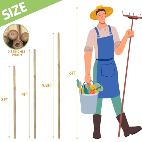 【Premium Quality】:Bamboo stakes is exceptionally strong and durable,High-quality bamboo sticks are carefully selected and hand-made with a smooth surface with no visible cracks or blemishes. This helps to reduce damage to plants and makes them easy to insert into the soil.The bamboo garden stakes are fumigated twice to ensure that they can withstand the weight and wind and rain during the planting process. plant stakes are not easy to break or rot, have good quality, and have a long lifespan.
