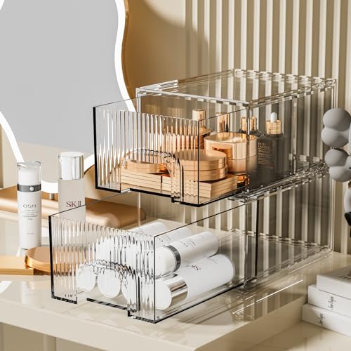 ZHIAI 2 Pack Clear Stackable Cosmetic Organizer, Acrylic Drawer, Plastic Organizer for Dresser, Vanity, Kitchen Cabinet, Pantry, Home Organization and Storage