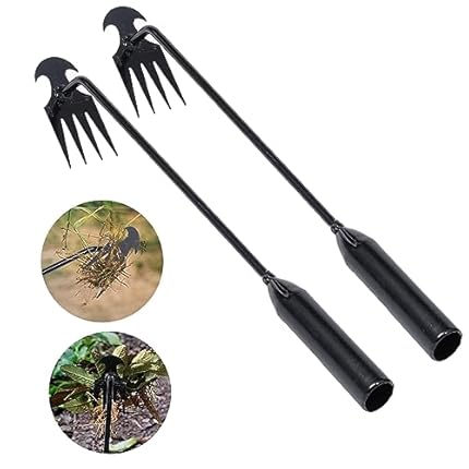 Weed Puller Tool Garden Weed Pulling Tool, Portable Garden Weeder Tool Uprooting Weeding Tool, 4 Teeth Manganese Steel Forged Hand Weeder for Vegetable Gardening Backyard Farm Planting & Weeding